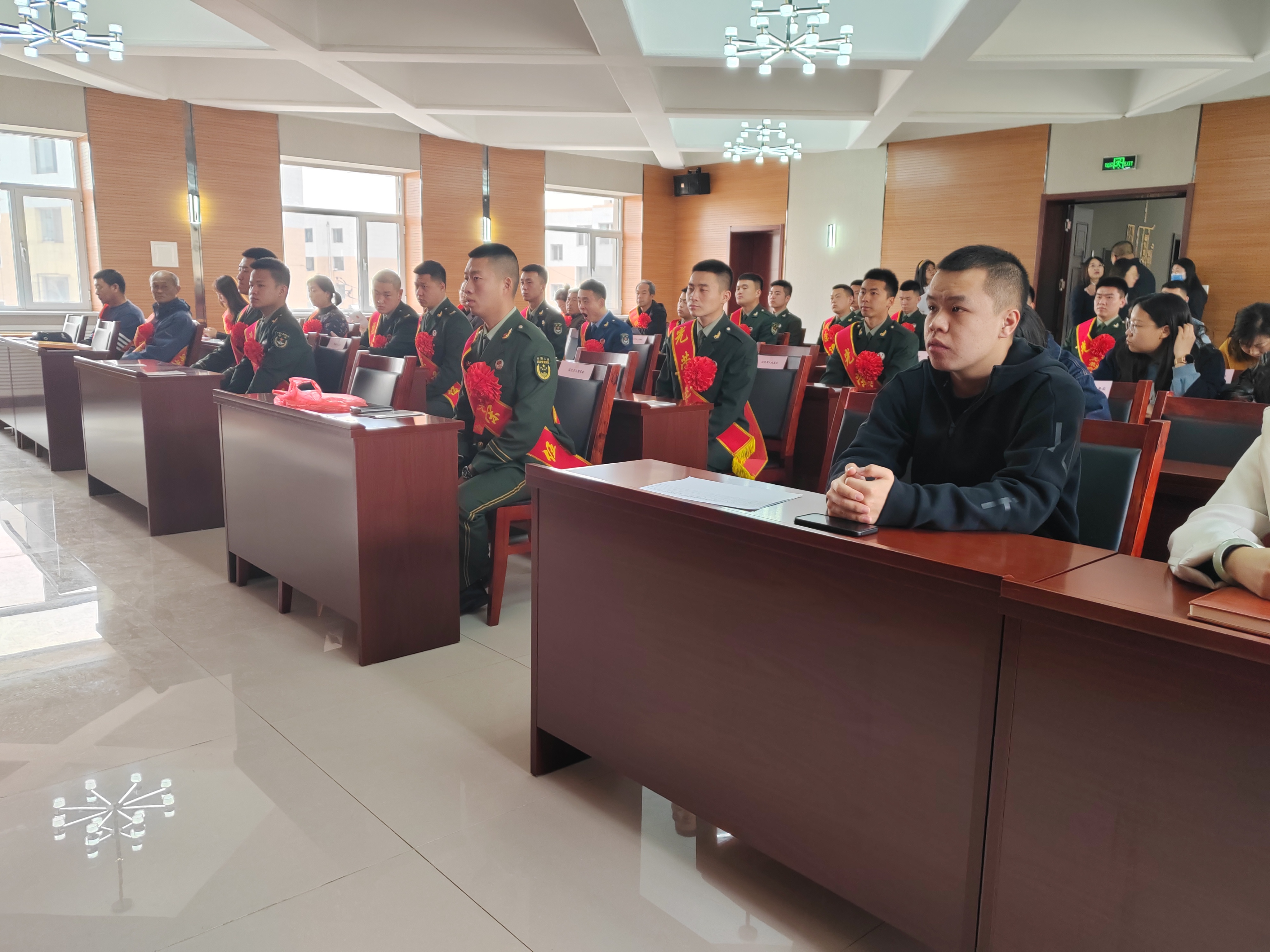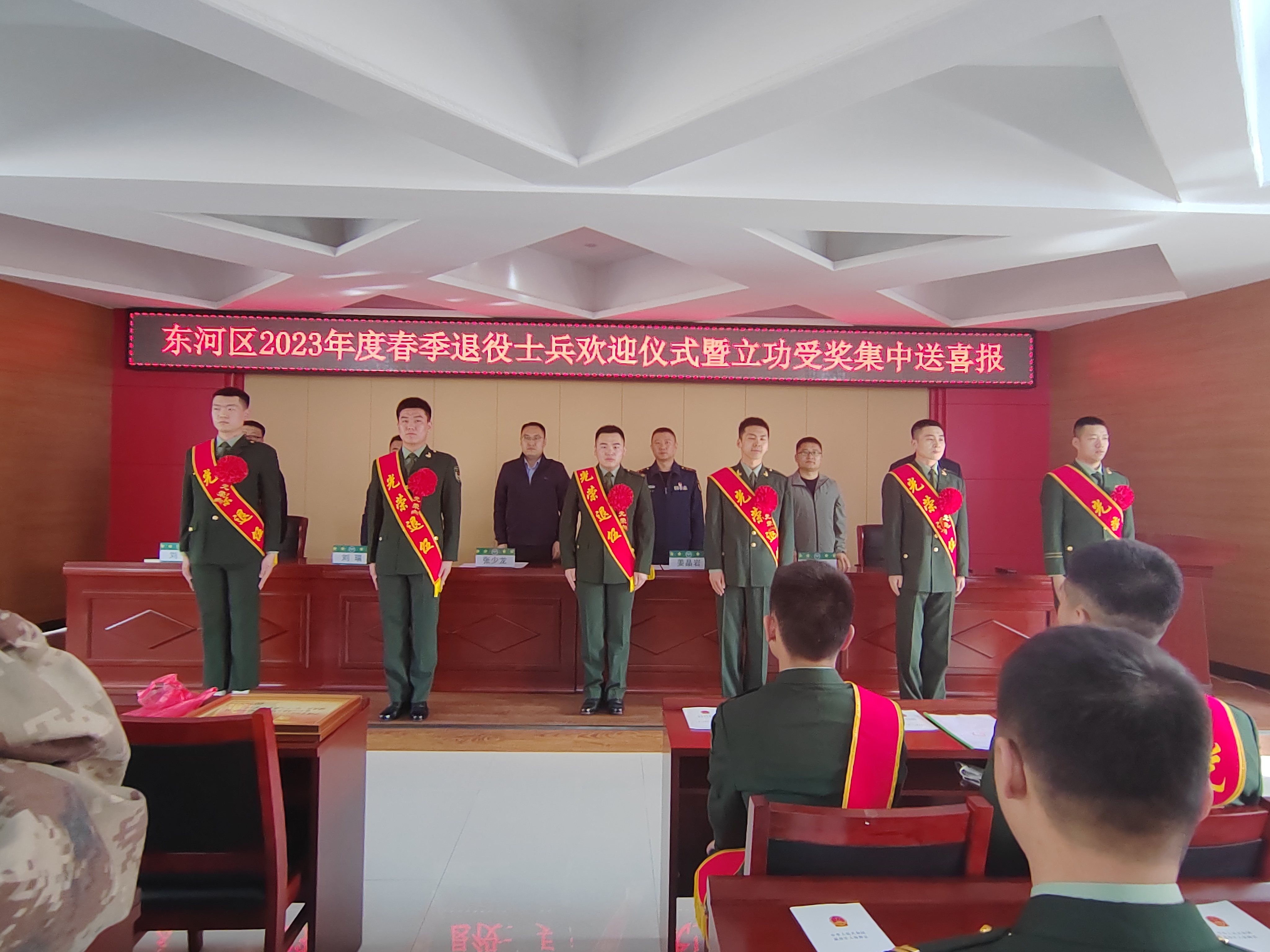 在欢迎仪式上,集中为2023年度春季退役士兵配绶带、戴大红花并邀请退役军人代表发言表态,为东河区2023年度10名荣立三等功军人家属集中颁授喜报,营造了“一人当兵,全家光荣”的良好社会氛围。局领导对2023年春季返乡退役士兵表示欢迎,大家积极响应党和国家的号召,光荣入伍,扎根军营,献身国防,为祖国和平、稳定发展作出了应有的贡献。殷切希望他们尽快适应新的环境和工作岗位,退伍不褪色、永葆军旅魂,以实际行动赓续军人的忠诚和担当。