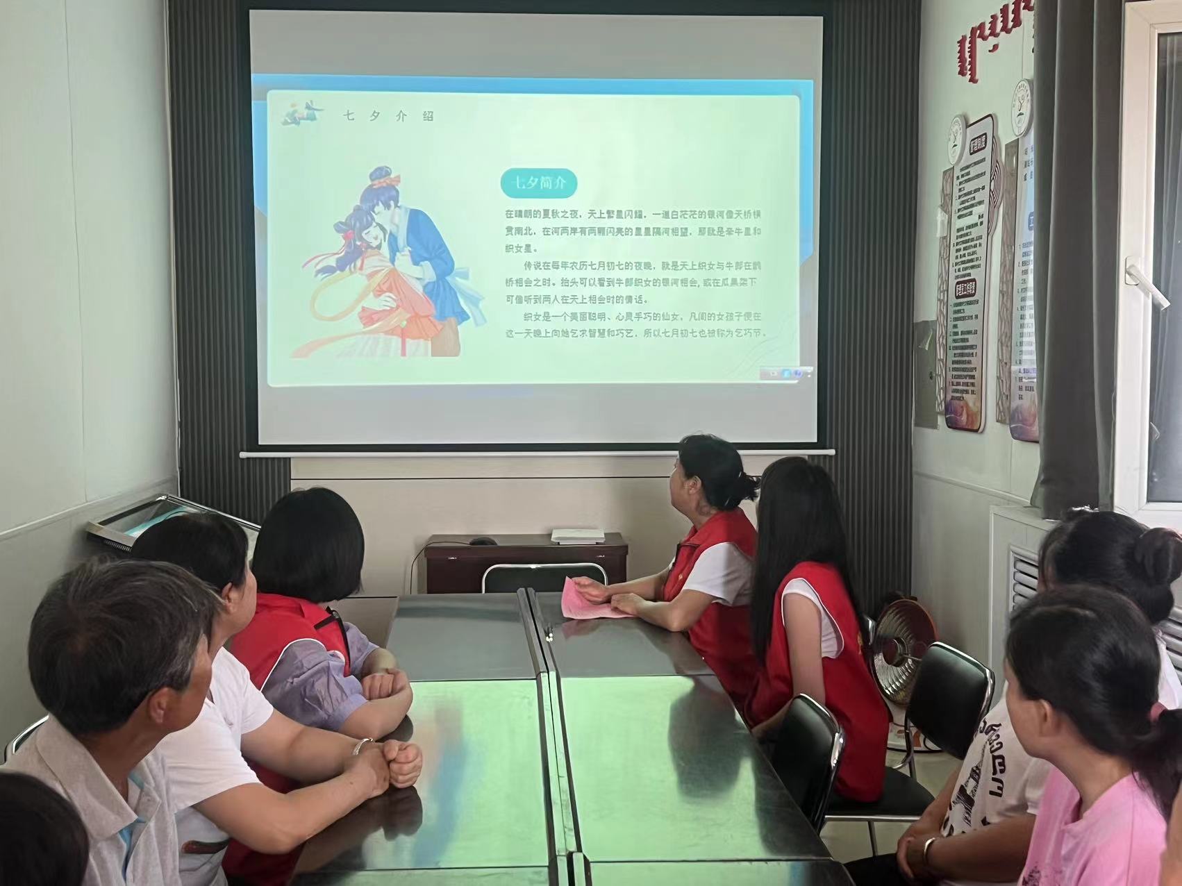 活动中,工作人员用ppt的形式向大家介绍了“七夕节”的由来。并且诵读了多首和“七夕”相关的诗词,让广大群众充分感受浪漫爱情,追求幸福美满的生活。