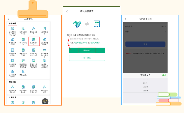 进入【人社专区】页,下翻至【养老保险】点击【历史缴费情况】,
