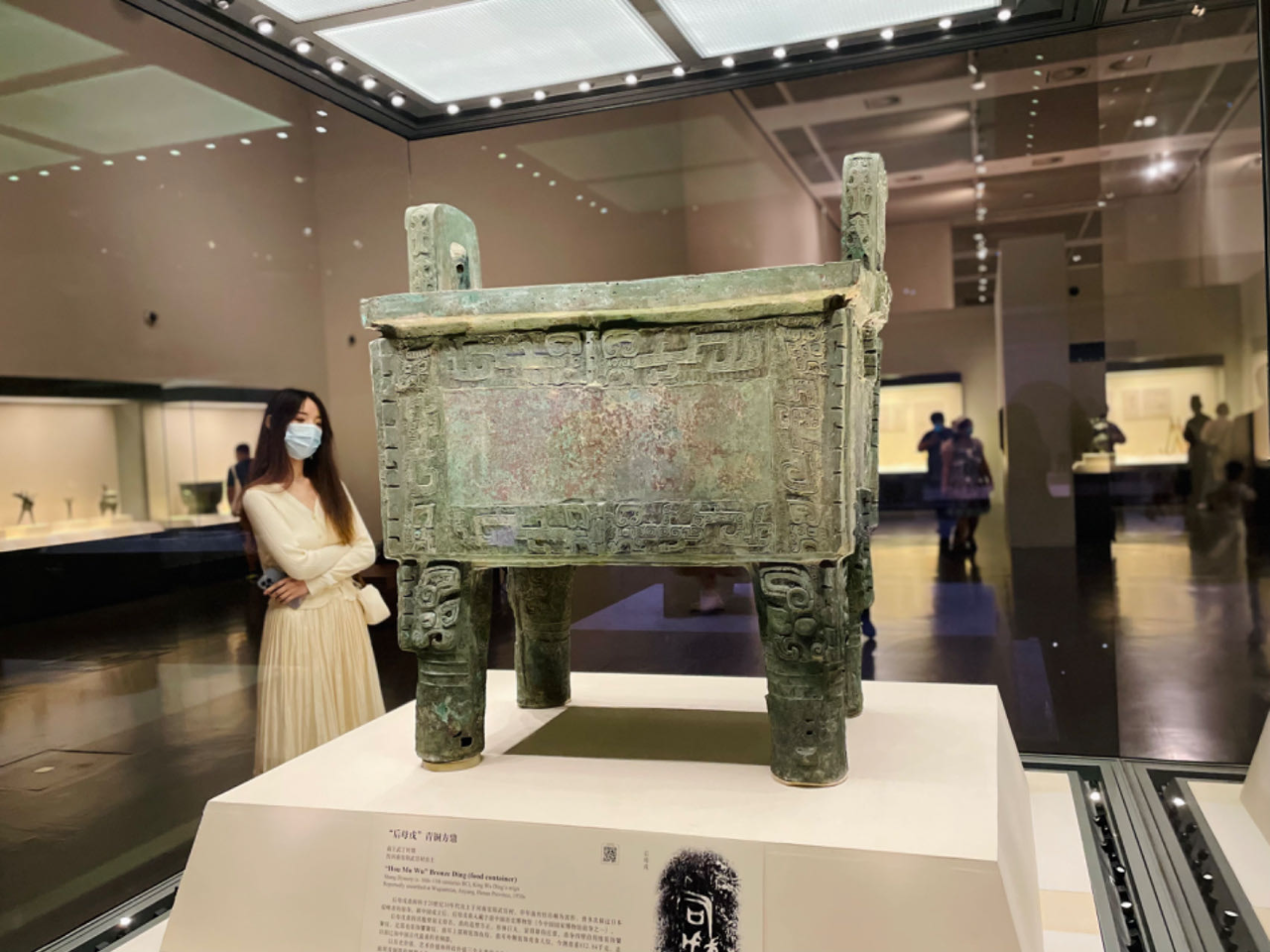 ▲观众在中国国家博物馆观赏“后母戊”青铜方鼎。文静摄