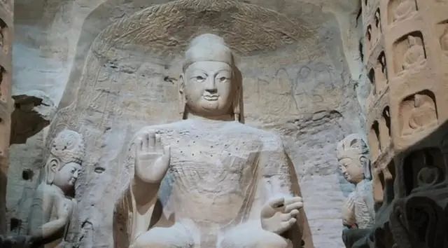 ▲云冈石窟第20窟大佛。图片来源:央视新闻眼