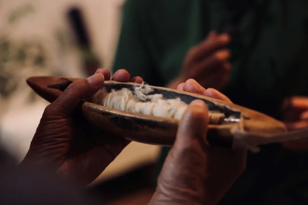 郑芬兰在交谈中得知,阿婆手里的梭是结婚时的嫁妆,已经陪伴她60多年。为了向阿婆求梭,郑芬兰在阿婆家一住就是4天。“离开那天,阿婆追到村头,从围裙的口袋里掏出梭送给我,她说现在年轻人很少会纺织,要我好好守护它。”这个场景郑芬兰至今难忘。