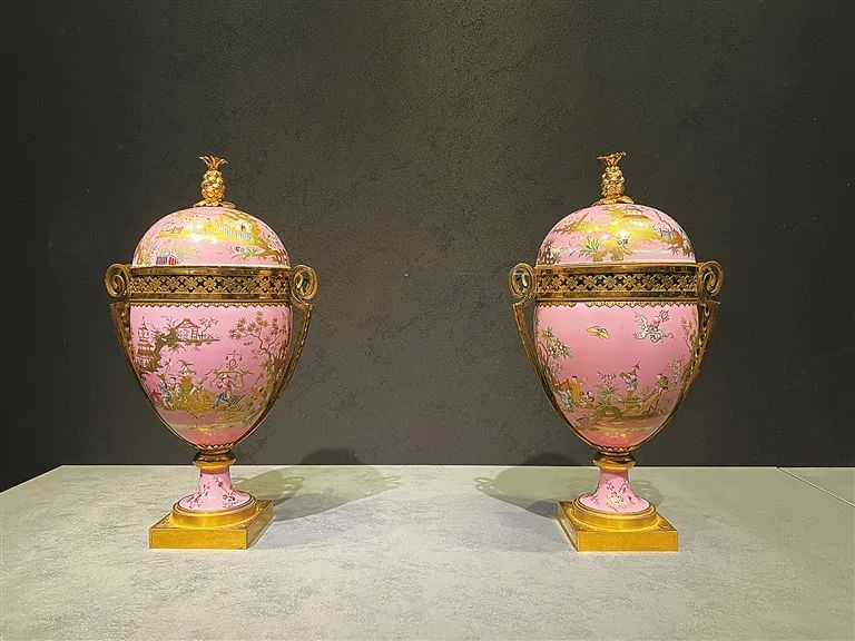 同一时期,法国还对中国艺术品进行装饰和改造,尤其是对中国瓷器进行改造,使其更符合自身的审美和需求。18世纪,随着铜鎏金技术的发展,华丽繁复的铜鎏金装饰与精致典雅的中国瓷器完美结合,与当时法国宫廷豪华的室内装饰风格融为一体。此外,将中式屏风上的漆板切割下来,装饰在古希腊风格的柜子上,是18世纪30年代巴黎商人的创意,虽造价昂贵,但深受王室和贵族喜爱。