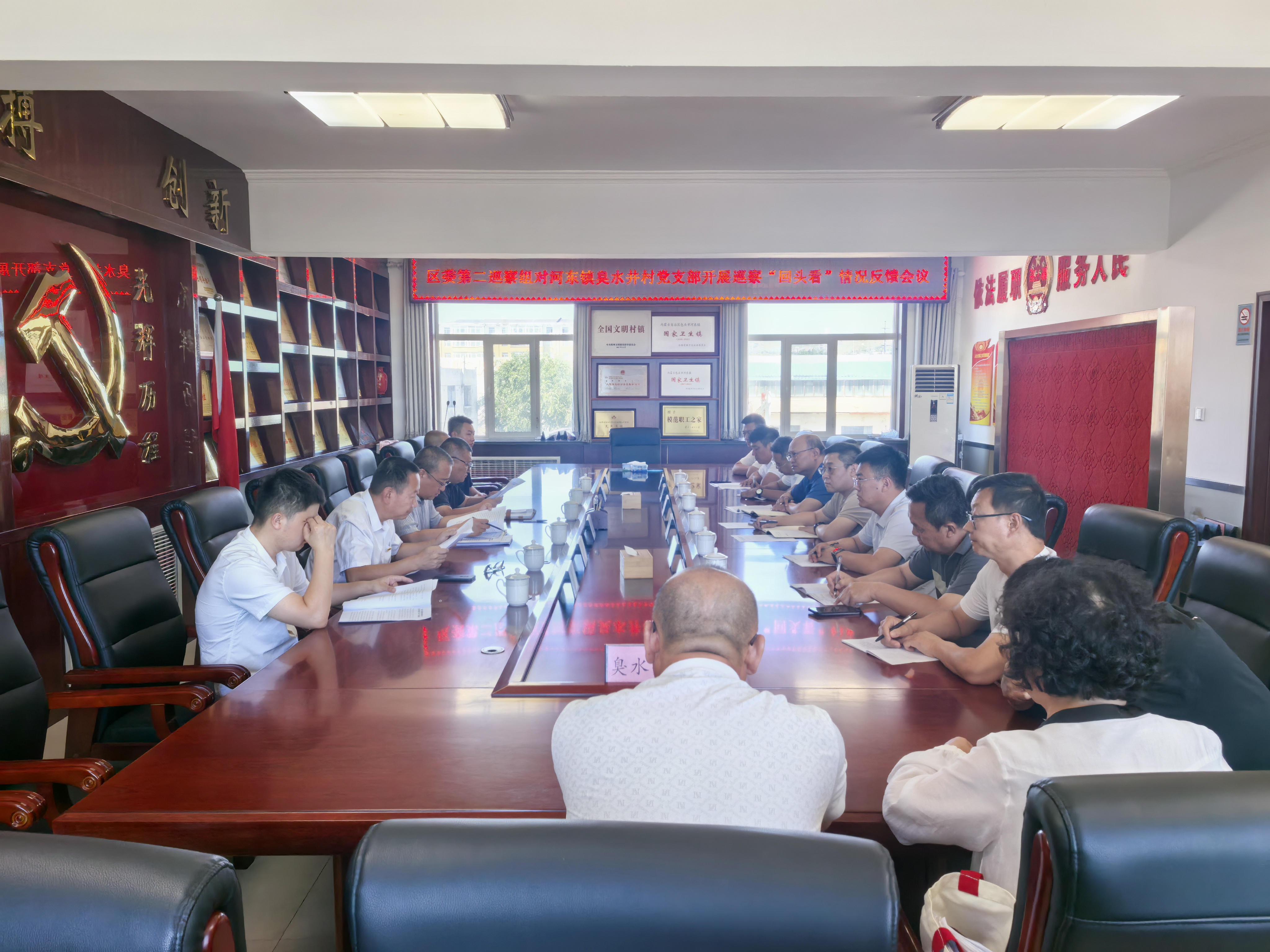 区委常委、纪委书记、监委代主任涂永文、区政府副区长呼格吉乐,区纪委监委、区委组织部有关负责同志,区委第二巡察组有关成员,河东镇党委书记郭雨、党委副书记侯乐义、纪委书记张立洲出席会议;臭水井村包村领导、包村干部及村“两委”成员、村务监督委员会成员列席会议。
