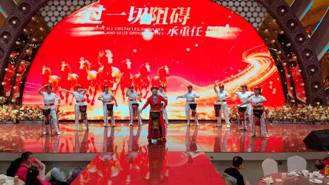 整场演出涵盖歌舞、小品、戏剧、乐器演奏、独唱等多个种类的50余个节目,在有序的组织安排下逐一精彩呈现。活力满满的新疆舞节奏明快、舞姿曼妙,演员们裙摆飞扬,尽显异域风情;悠扬婉转的萨克斯连奏旋律动人、余音绕梁;默契十足的双人舞舞步轻盈、配合无间,将浪漫与优雅展现得淋漓尽致;灯笼舞韵味十足,红彤彤的灯笼摇曳生姿,舞步喜庆欢快,为新年盛会增添了浓浓的年味;走秀表演者们步履从容、仪态万方,用优雅的肢体语言展现出新时代女性自信、独立、端庄的独特之美。参与演出的银发表演者们热情高涨、活力四射,舞步间满是朝气,演奏中饱含深情,充分展现了“老骥伏枥、志在千里”的昂扬精神面貌。