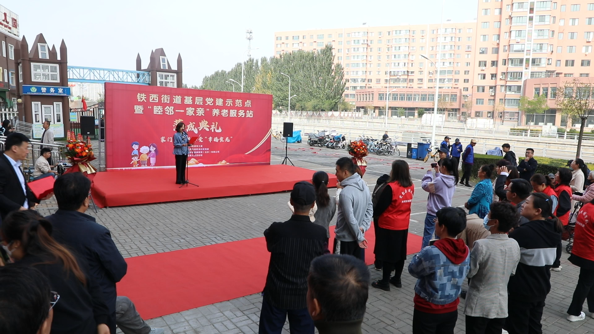 10月12日,铁西街道“睦邻一家亲”养老服务站在旺龙社区举行启用仪式。市养老服务中心副主任郭贤亮,区委常委、组织部部长程利翔,区委常委、宣传部部长万丽,区人大常委会副主任张勇,区政府副区长赵丽霞,区政协副主席杨丽虹,及区民政局等相关单位负责人出席活动。