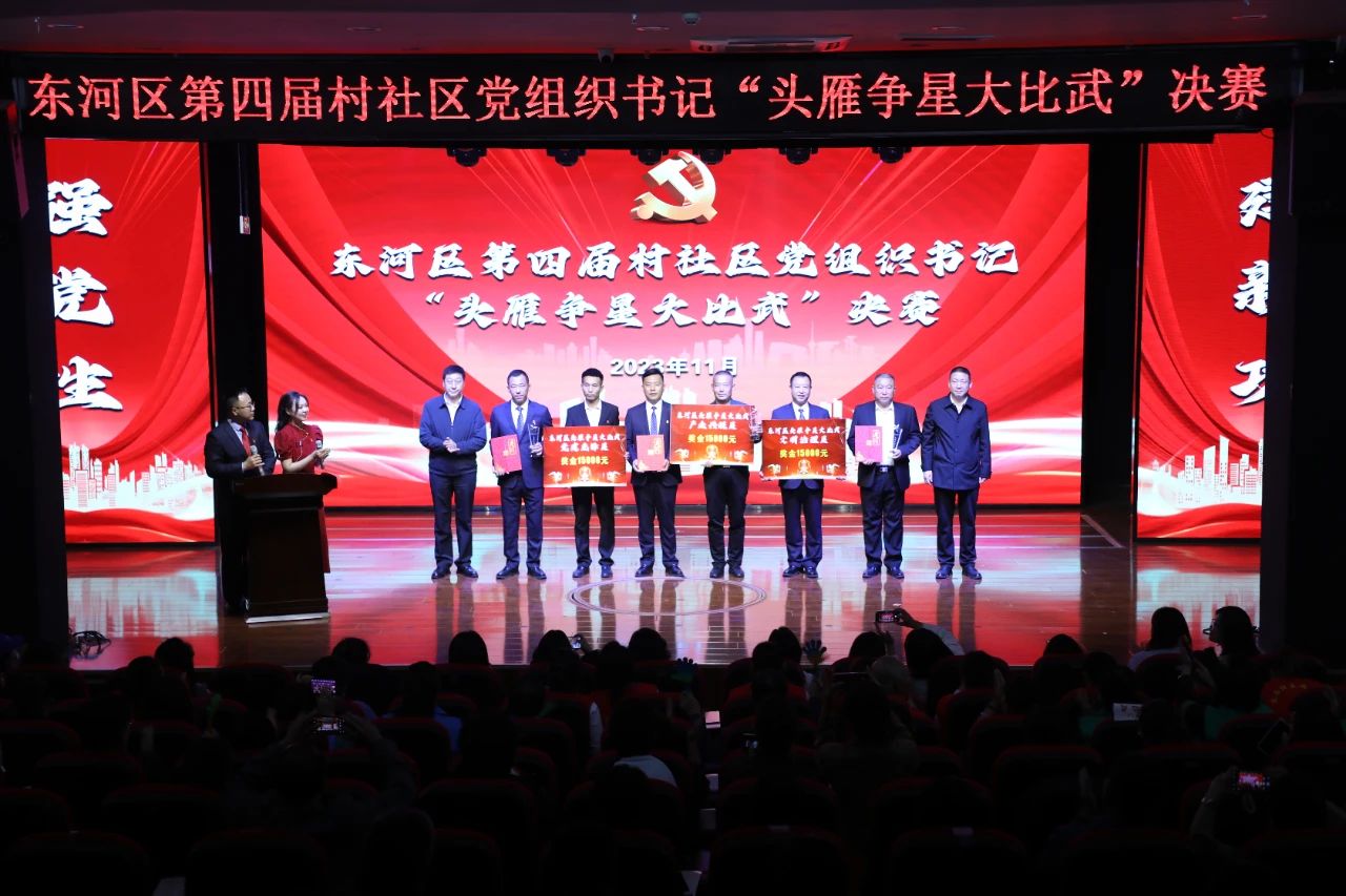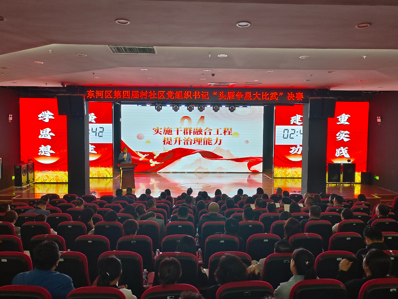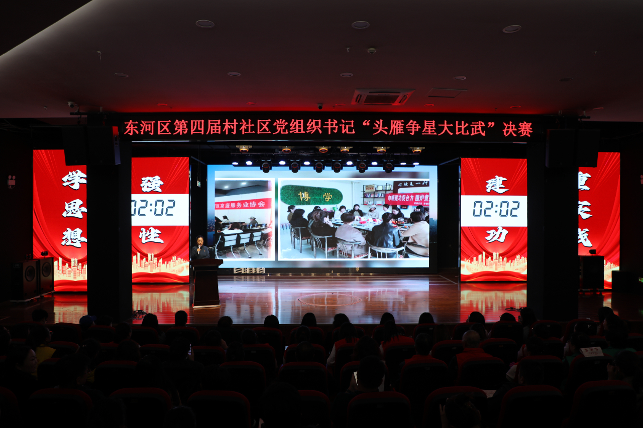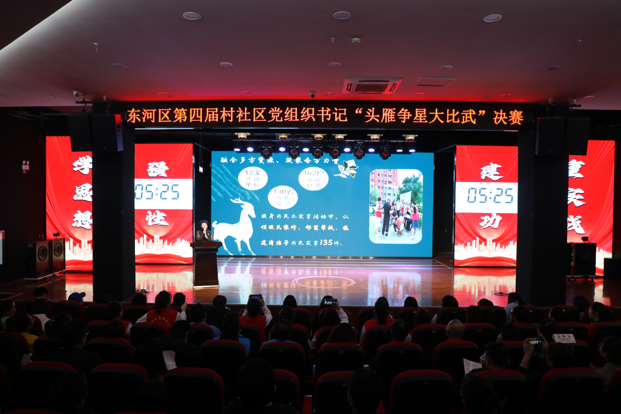为深入推进学习贯彻习近平新时代中国特色社会主义思想主题教育,全面展示村、社区党组织书记工作风采,激发干事创业热情,营造“对标找差距、看齐促提升、争先当示范”的比学赶超、创先争优氛围,11月1日,东河区举办第四届村、社区党组织书记“头雁争星大比武”决赛。