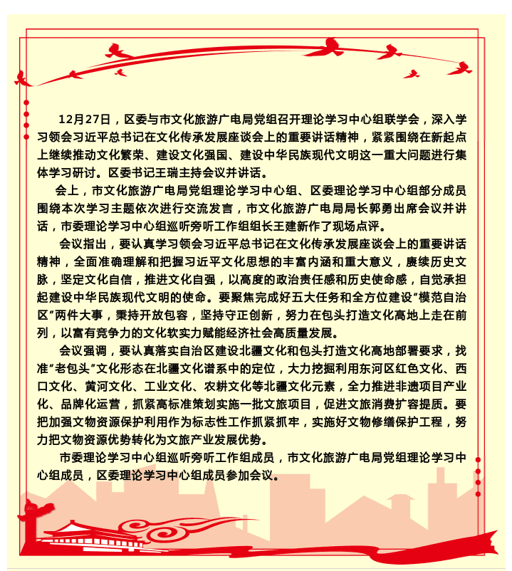 区委与市文化旅游广电局党组召开理论学习中心组联学会