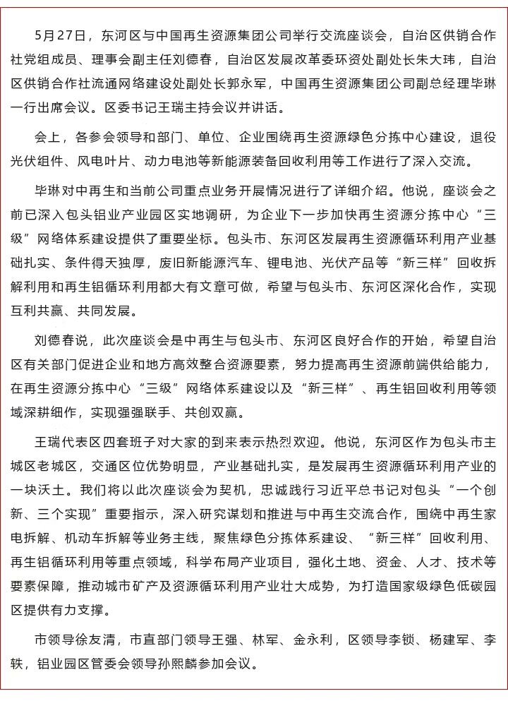 东河区与中国再生资源集团公司举行交流座谈会
