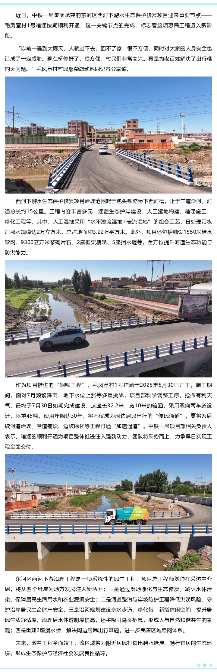 稳步推进!东河区西河下游水生态保护修复项目取得新进展