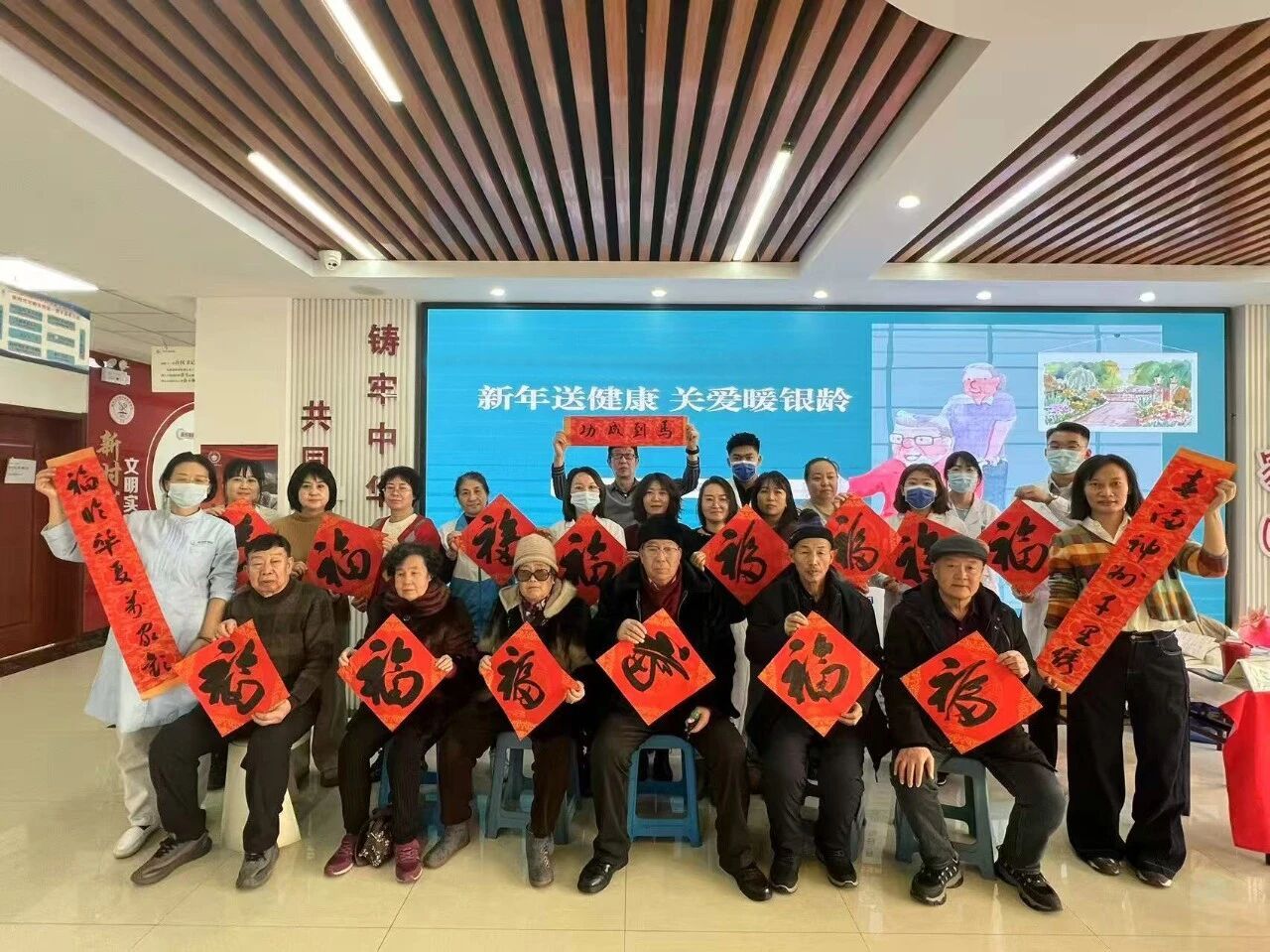此次活动远不止一次体检。现场还变身“一站式”便民服务集市。政策咨询台前,工作人员细致讲解养老政策与意外险条款;反诈宣传区,民警结合案例提醒老年人守护好“钱袋子”;爱心义诊区域,来自天衡医疗、东大肛肠、朝聚眼科、贝特瑞尔口腔、幸福口腔等医疗机构的医生们耐心解答健康咨询;适老化产品体验区吸引不少老年人驻足,让老人们亲身感受科技养老的便利。此外,墨香阵阵中,书法协会的老师们挥毫泼墨,一幅幅春联、一张张“福”字递到老人们手中,浓浓年味扑面而来。