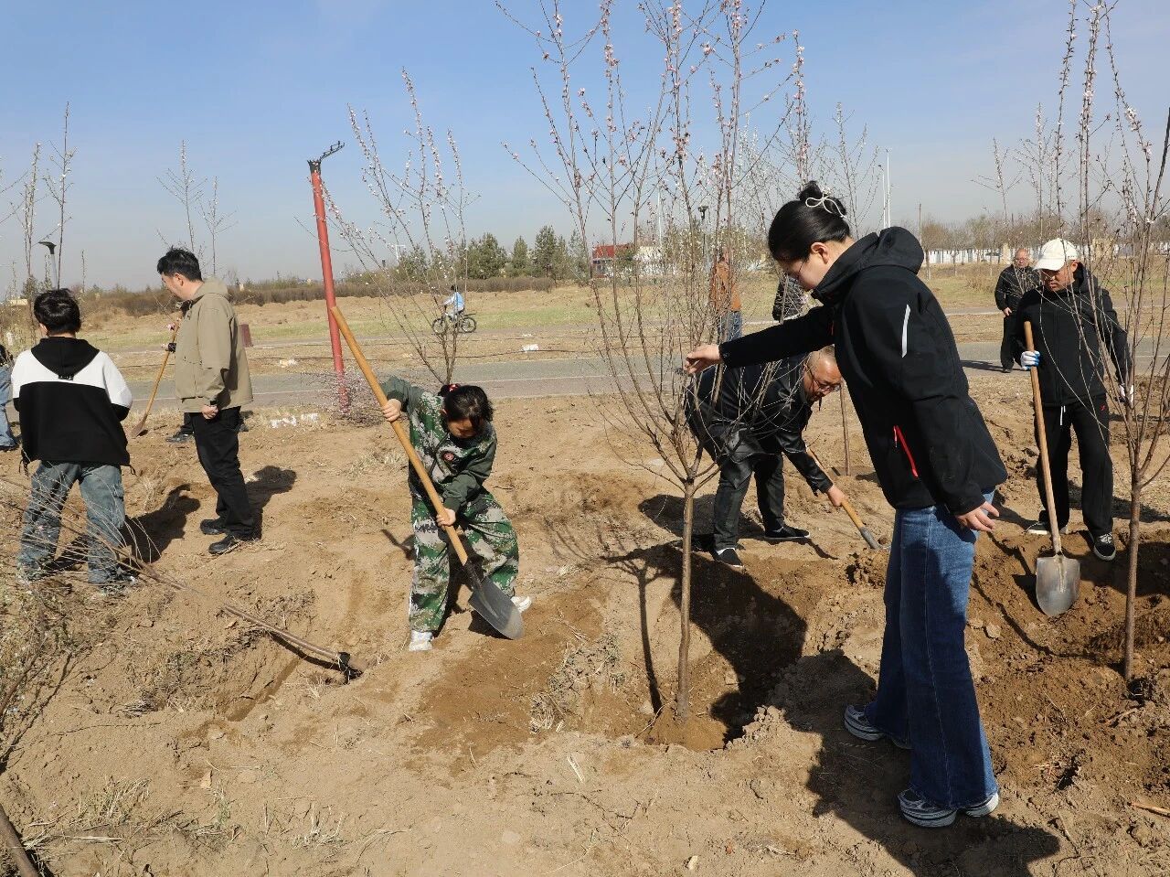 “这次我们选用的是山桃,共种植近500株。山桃花期早、花色艳丽,耐寒耐旱,非常适合本地生长,既能固土护坡,又有很高的景观价值。”东河区农牧局相关负责人介绍,“后期我们将进行精细化养护,确保树木成活率,真正让‘绿意’扎下根。”