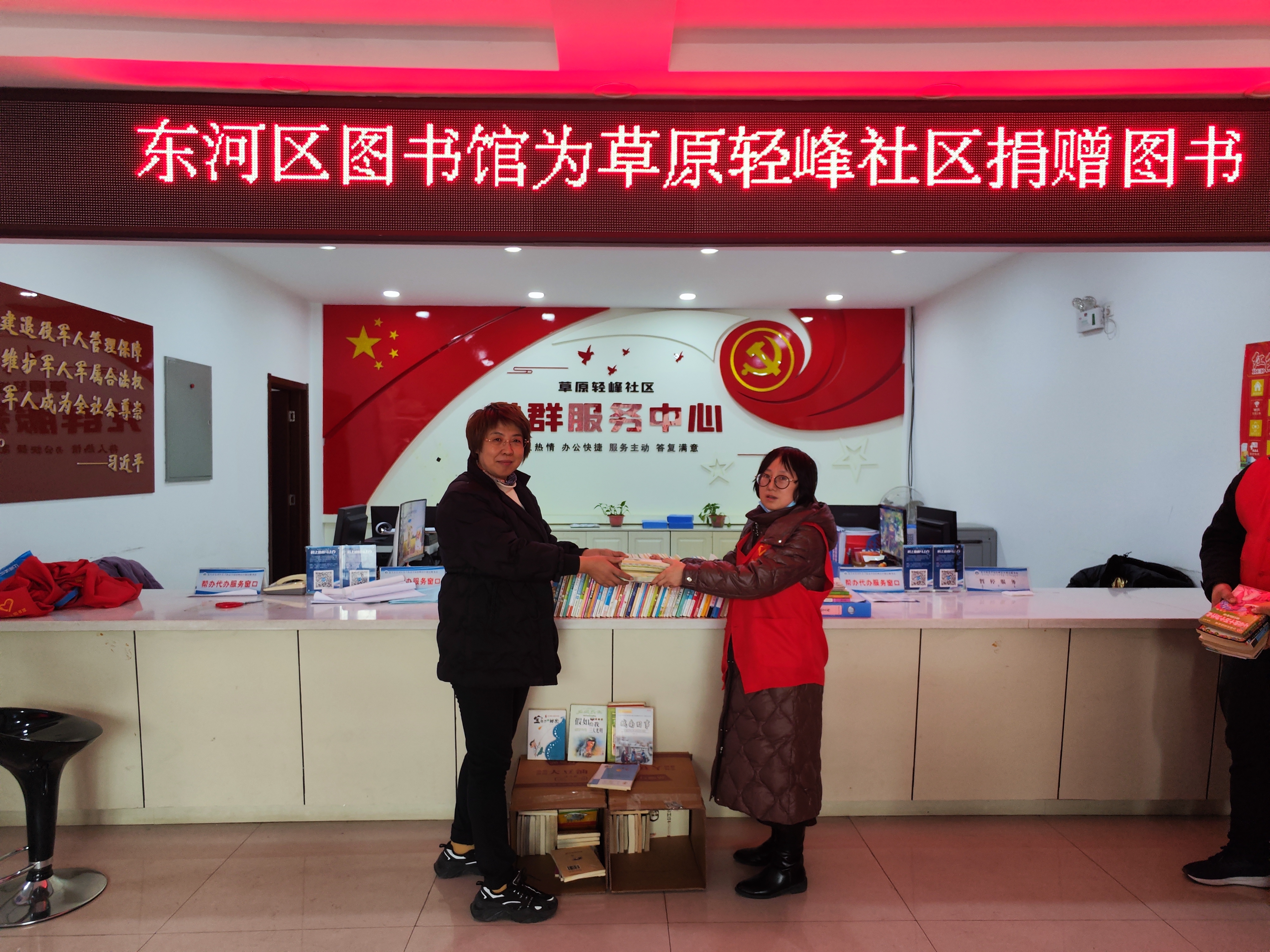 为构建和谐社区,充实社区藏书量,营造“让读书成为一种时尚,让学习成为一种习惯”的良好阅读氛围以及爱惜书籍、尊重知识的良好美德。11月22日,东兴街道草原轻峰社区联合东河区图书馆,共同开展“书送美好”,为社区图书室捐赠图书活动。