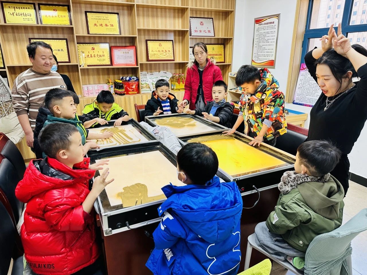 为了丰富社区儿童文化生活,刺激和发展儿童的视觉和触觉运用能力,锻炼孩子左右手协调配合能力,11月23日,巴一社区在妇女儿童之家为小脚丫国际艺术幼儿园的小朋友们开展了一堂生动有趣的沙画课程。