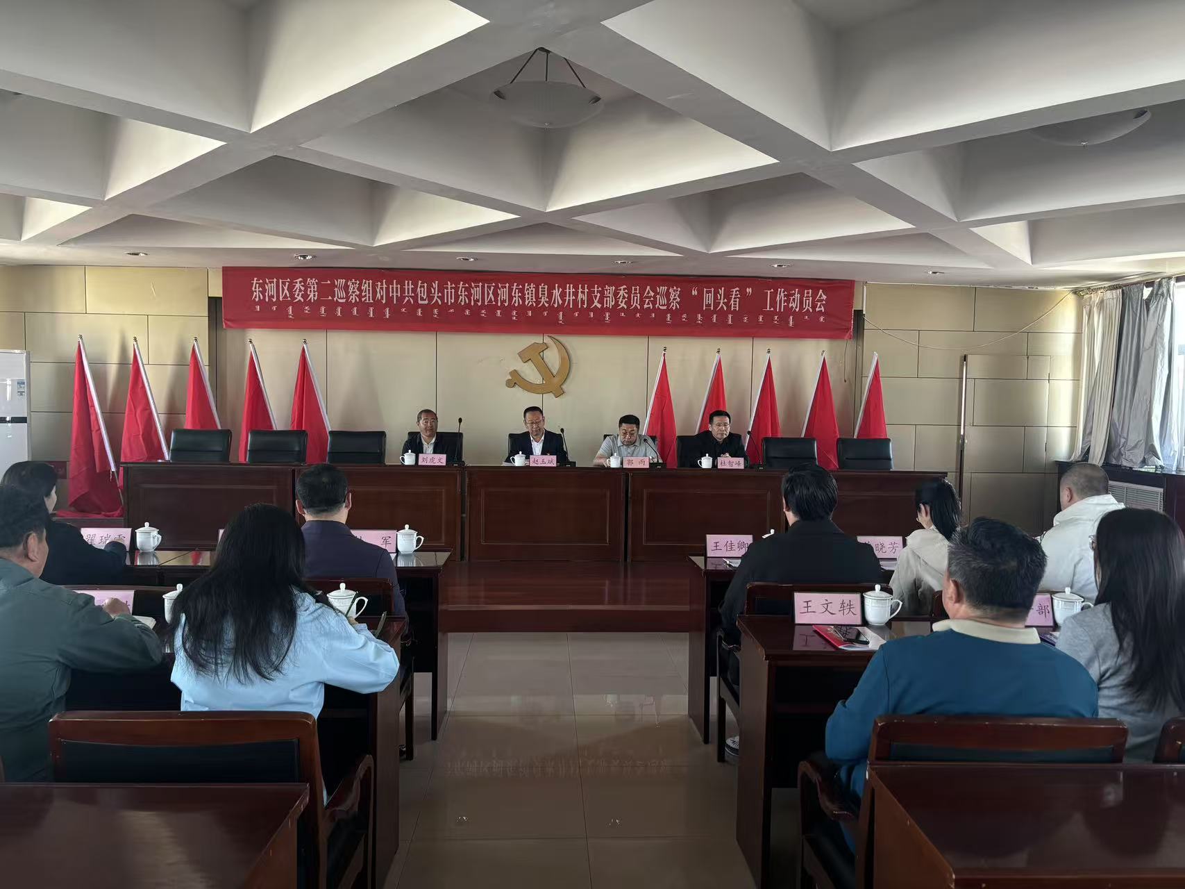 按照十一届东河区委第八轮巡察任务安排,4月28日,东河区委第二巡察组对中共包头市东河区河东镇臭水井村支部委员会开展巡察“回头看”工作动员会在河东镇人民政府召开。东河区委第二巡察组组长赵玉斌通报了巡察任务和工作安排,就深化政治巡察、配合巡察工作提出要求。河东镇党委书记郭雨主持会议并作表态发言。臭水井村党支部书记葛军友作表态发言。