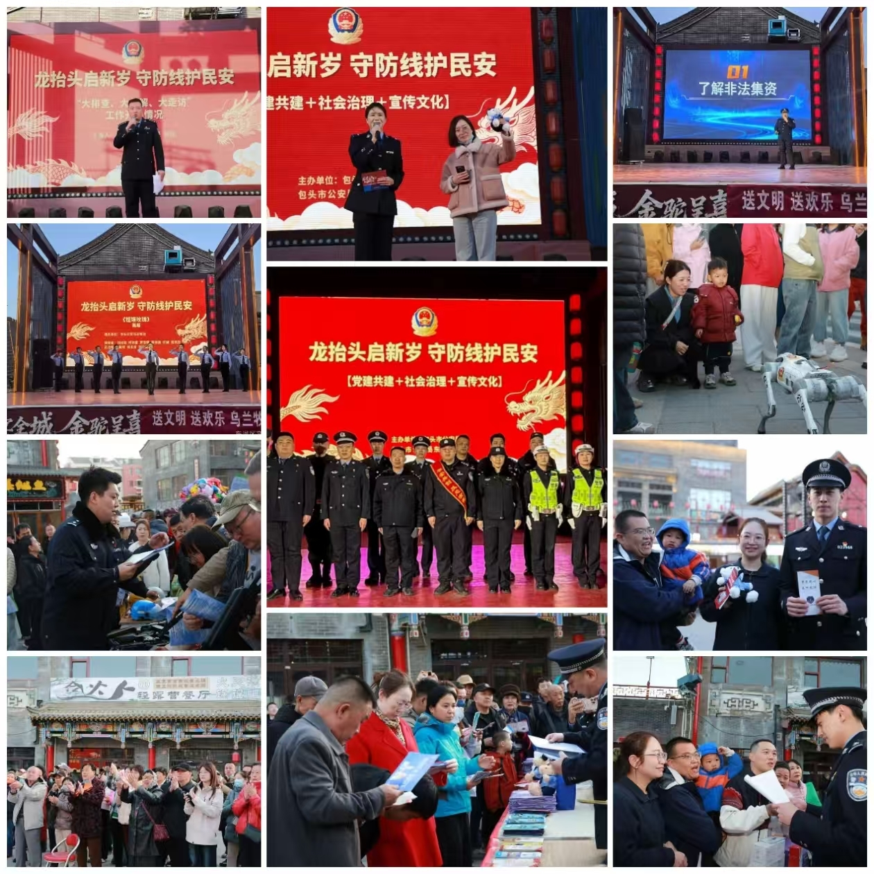 此次活动不仅是犯罪预防宣传的集中“路演”,更是一场别开生面的警民互动“嘉年华”。通过党建共建、工作汇报、警种宣讲、文艺演出、装备展示、有奖问答等多元形式,进一步拉近警民距离,提升了群众安全感和满意度。“龙抬头”开启新岁,“守防线”护佑民安。 包头公安将以此次活动为契机,持续深化“大排查、大化解、大走访”,不断创新宣传形式,筑牢全民安全防线,与广大市民携手共建更高水平的平安包头!