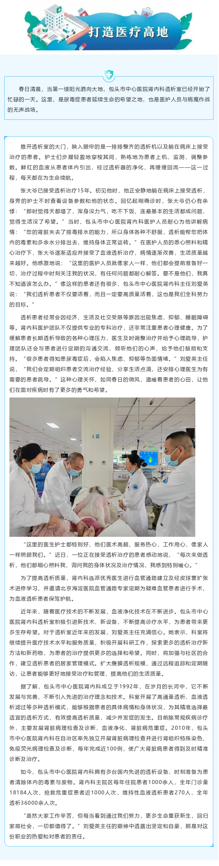 打造医疗高地丨市中心医院肾内科透析室:生命“净化站”里的守护与担当