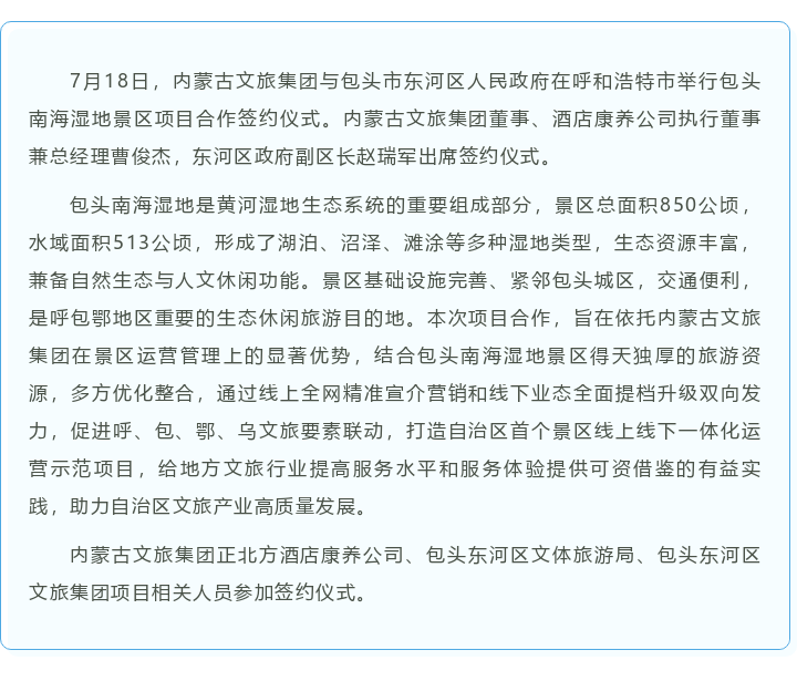 包头南海湿地景区线上线下一体化运营示范项目签约
