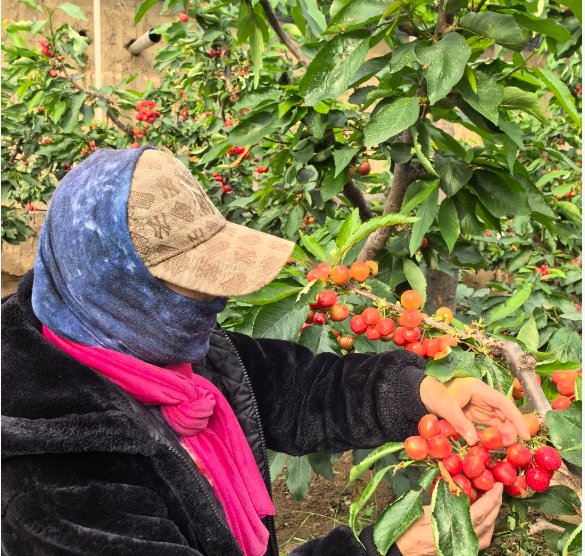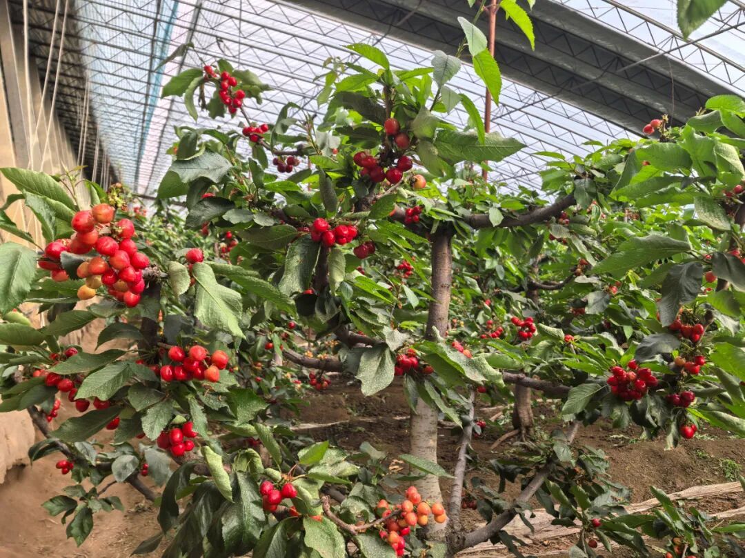 沙尔沁镇得天独厚的自然禀赋,为樱桃生长提供了天然沃土。而“智慧农业”的深度融入,更让这片土地焕发出科技的光彩。温湿度传感器实时感知细微变化、智能系统自动调节棚内环境,滴灌精准供给水肥、大数据平台精准把脉生长周期。双温控技术的加持,使樱桃挂果期较露天种植提前两个月,恰逢其时地填补了进口樱桃退市后的市场空窗期。