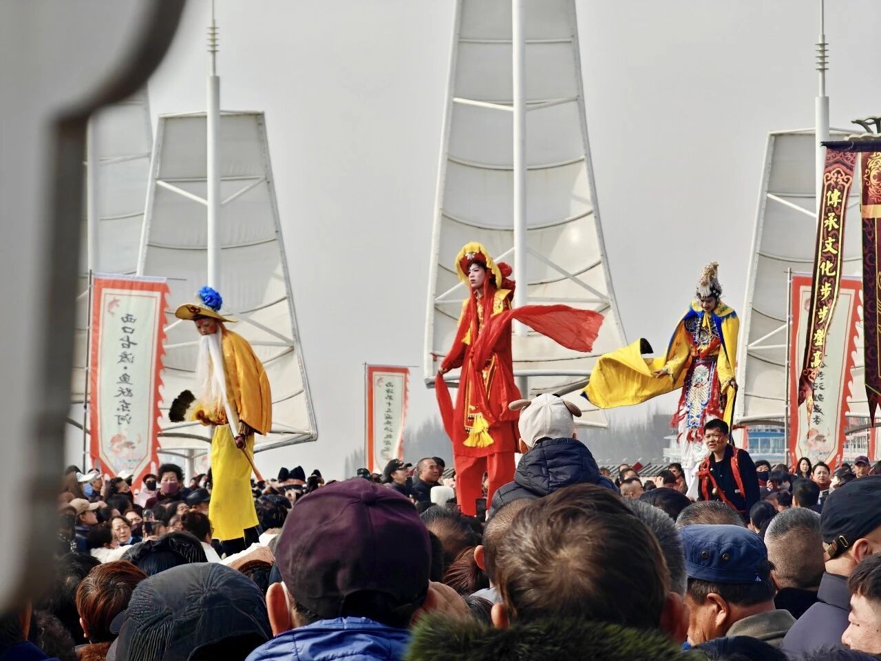 活动在激昂的锣鼓声中正式开始。本地知名非遗团队——鹿城高跷队率先登场,表演者们脚踩高跷,以精湛的技艺和生动的演绎,呈现了一场极具北方民俗特色的视觉盛宴。随后,多名身着传统服饰的巡游使者手持定制黄河鲤鱼造型鱼灯,为现场观众带来了富有传统韵味的鱼灯舞表演,营造出浓厚的节庆氛围。