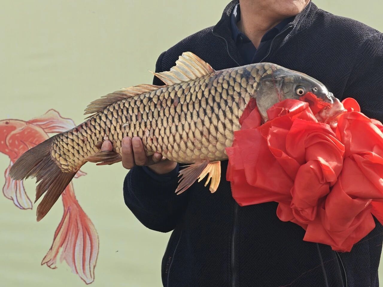 活动现场举行了庄重的鱼苗投放仪式,传承黄河“放鱼养水、祈福纳祥”的古老民俗,寄托对平安顺遂的美好祈愿。随后,备受瞩目的“开河头鱼”拍卖环节将气氛推向高潮,象征“吉祥如意、年年有余”的开河“头”鱼,以其鲜美品质吸引了众多竞拍者。
