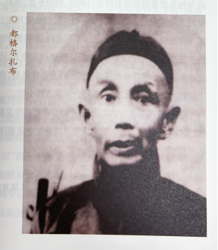都格尔扎布,蒙古族,1856年生,内蒙古土默特右旗美岱召村人。 都格尔扎布幼时参加劳动,入美岱召求学蒙文。十八岁时,就读土默特启运书院。毕业时,已掌握蒙、汉、满三种文字,被书院评为优等生。之后,被土默特议事厅录任为“笔帖式”(即文书)。十六年后,提升为骁骑校、公中佐领、土默特右翼六甲参领。