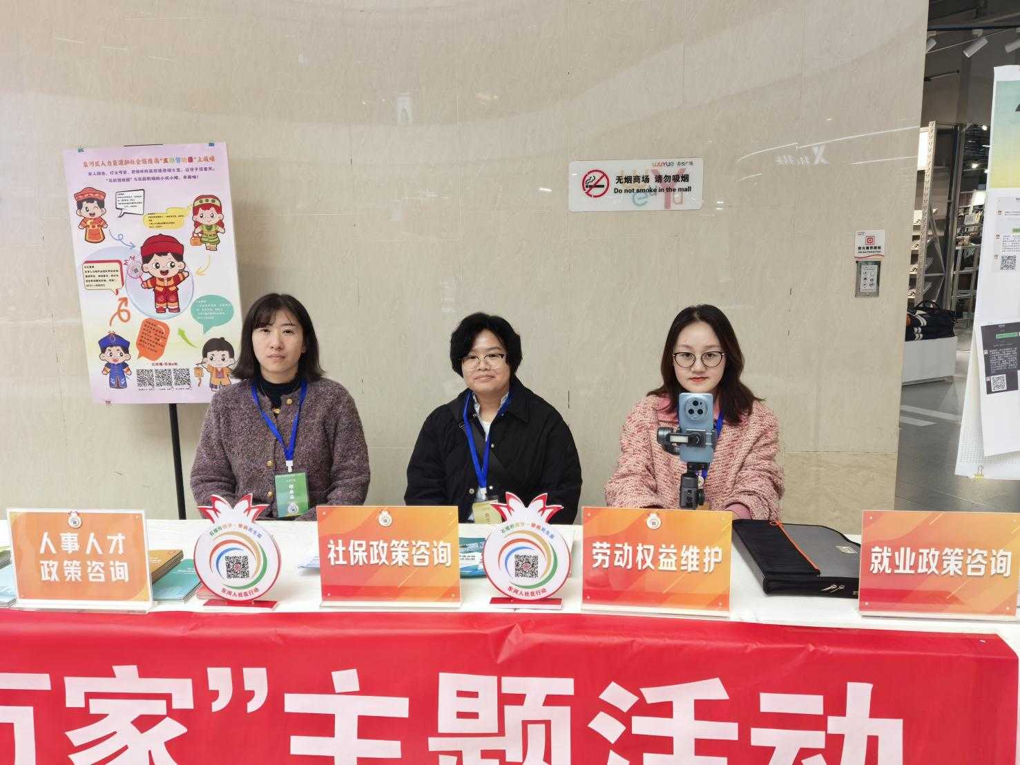 求职者入场后,只需扫描现场二维码,即可快速浏览全部岗位信息、精准筛选意向职位、在线投递简历,轻松实现“一键找岗、掌上求职”,大幅提升求职效率;企业通过现场播放视频、展示实景图片等方式,直观呈现生产车间、工作环境与企业文化,让求职者看得真切、问得明白,有效降低求职盲目性;创新打造东河区“政策问答指引”专区,制作人社政策宣传展板,将社保参保、劳动仲裁、就业创业补贴等群众关心的政策化繁为简,以口语化指引、通俗化解读做好详细说明,实现政策一看就懂、一问便知;同步为参会企业录制宣传短视频,全方位推介企业实力与岗位优势,依托“职享东河”公众号和“就业东河”抖音号持续推送、长期宣传,实现“一次招聘、长期受益”;专设创业服务专区,组织创业孵化基地、职业培训学校现场展示创业成果、开展招生咨询,构建起“就业+创业+培训”一体化服务格局,为群众提供多元化发展路径。
